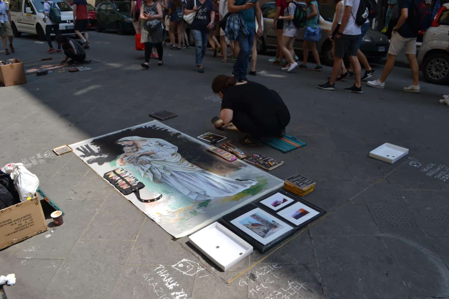 We also saw artists working on pastel artwork on the paving between the Duomo and River Arno.