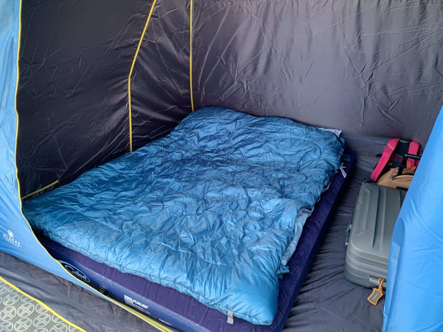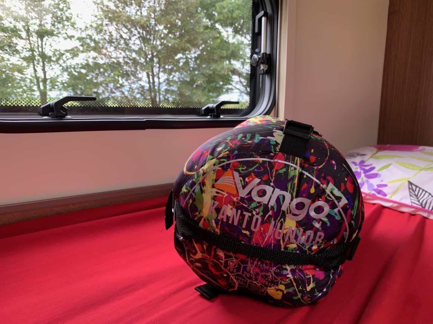 We have reviewed the Vango Roar Double and Vango Kanto Junior sleeping bags for kids, which work for both camping and touring caravan holidays. These bags are now a few seasons old but there are plenty of similar ones to pick from this year.
