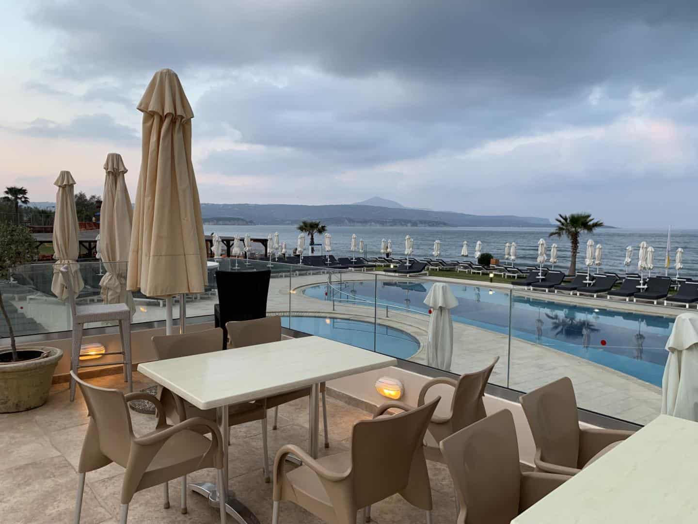Sea View restaurant balcony view at Kiani Beach Resort - an all inclusive family resort in Crete