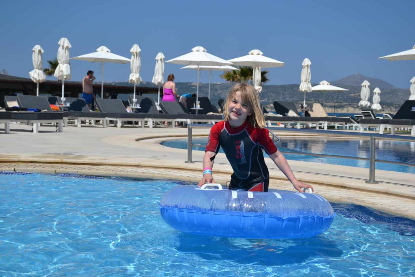 Tot in splash pool at Kiani Beach Resort - an all inclusive family resort in Crete